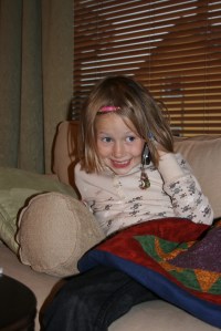 Siden Englefjes var sååååå flink en liten helt og gikk på skolen i går, selv om ho var pjusk, slik at jeg kunne dra på jobb og dermed få billettene våre(som vi faktisk har fått fra telefonleverandøren vår!) bestemte jeg meg for å strikke bodøglimtskjerf til ho. Og det ble, til tross for feber og vond hals, tatt godt imot. Det var så vidt jeg fikk lov til å låne det for å vaske og blokke det da det var ferdig, og det var det første som kom på da jeg stod opp i morgest. Til og med Misty likte å kose med skjerfet, men det likte ikke Mathilde fordi hun jo var syk og vi kunne ikke risikere at Mistyen vår også ble syk.