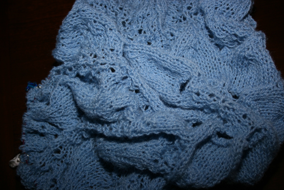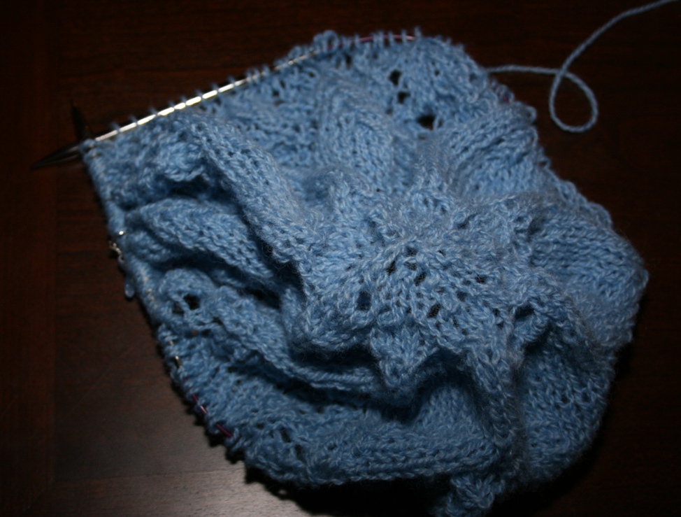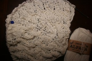 Etter råd fra Roger startet jeg på et sjal til da jeg var tom for garn til pleddet, Luna Moth Shawl er i sin spede begynnelse…