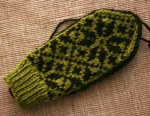 Etter å ha strikket et lass med venstrevotter til små barn har jeg oppdaget at det kanskje kunne være greit med en og annen høyrevott også. Neste vott ut ble en høyrevott (som ikke har fått venstrevott enda) og så strikket jeg, flink som jeg er en høyrevott til den første grønne venstrevotten jeg laget. Innimellom har jeg (nesten) strikket et par langsokker, men disse måtte jeg sende til mottaker med strikkepinner og garn, fordi jeg rett og slett gikk tom for tid. Jeg er muligens dronningen av utsettelser.