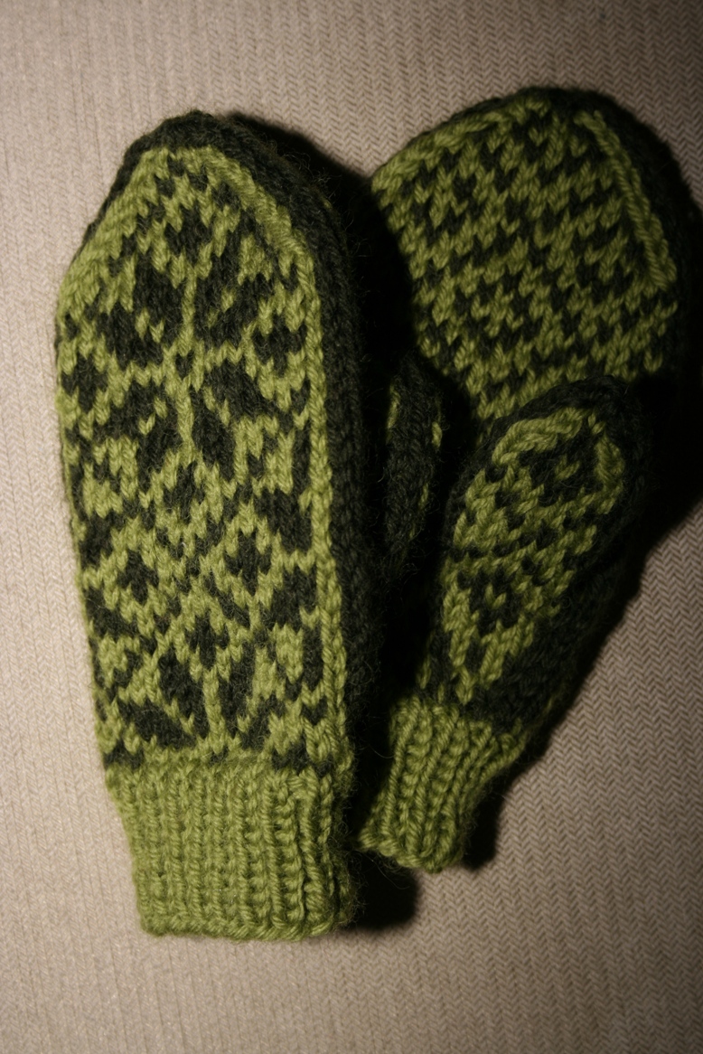 I`ve been knitting a whole lot of Selbu mittens for kids, that is I`ve been knitting a lot of left hand mittens. I figured it was time to knit some for little right hands too, so I ended up with another lone one and my first whole pair of mittens. Wohoo.