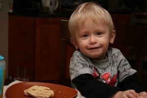 Stort sett hver Tirsdag er jeg så heldig å få besøk av Niklas på morgenen når Storesøstera kjøres på skolen. I dag hadde han mat med seg og etter å ha løpt rundt og sagt oi oi oi til alt rotet, prøvd å vaske klær, kaste noen garnnøster og løpe etter Misty en stund, så satte vi oss ned for å spise. Etter at han var dratt ryddet jeg sammen mønstrene mine fra stuebordet. Makan!