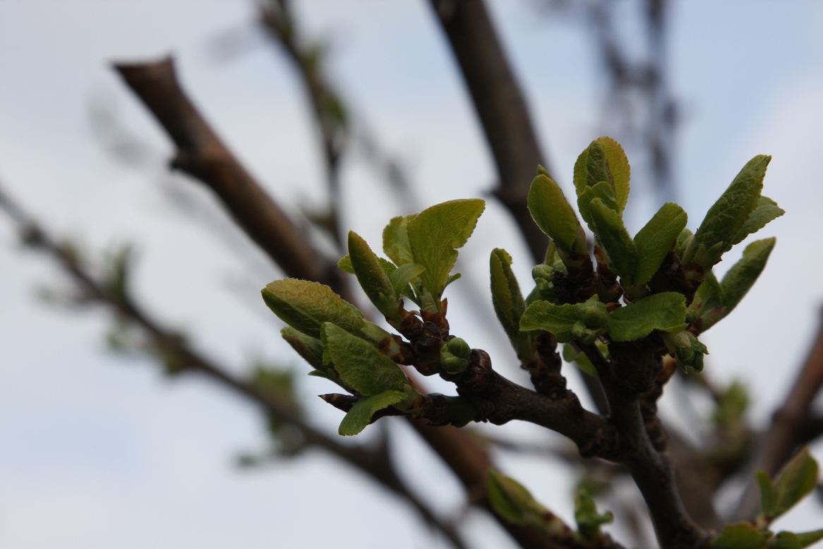 Epler, plommer, moreller og forskjellige bærbusker. Men hva som er hva? Det vet ikke vi. Enda. Regner med at vi ser det når frukten begynner å vokse.