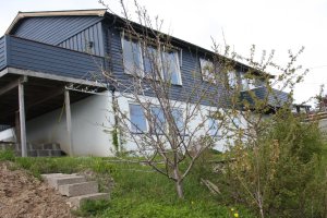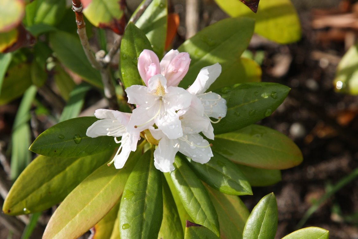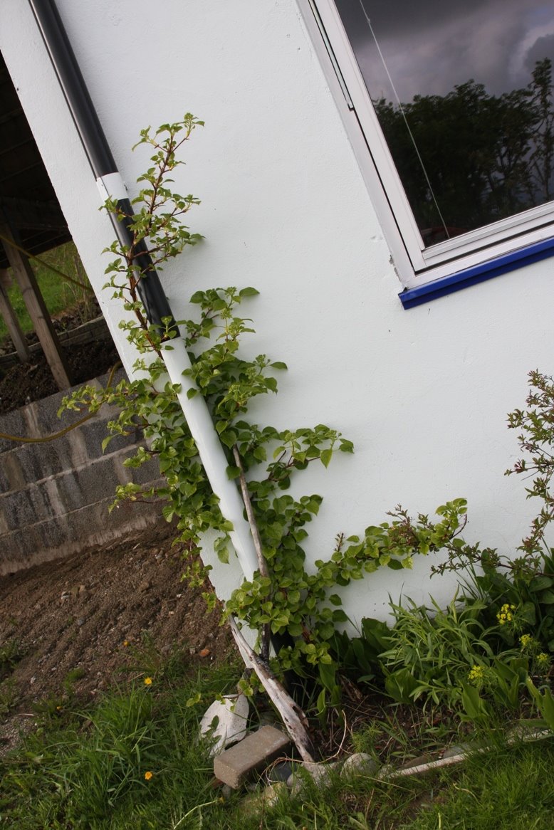 På nersiden av huset fins der bærtrær, frukttrær, jordbæråker og et langt bed som er fullt av rare planter i forskjellige farger. Noen kjenner jeg igjen, Rhododendron, Noe valmueaktig og en rosa som jeg ikke husker hva heter…