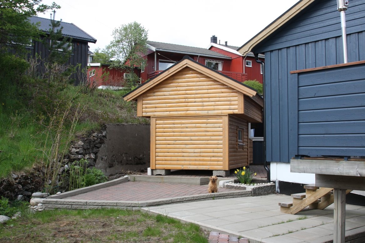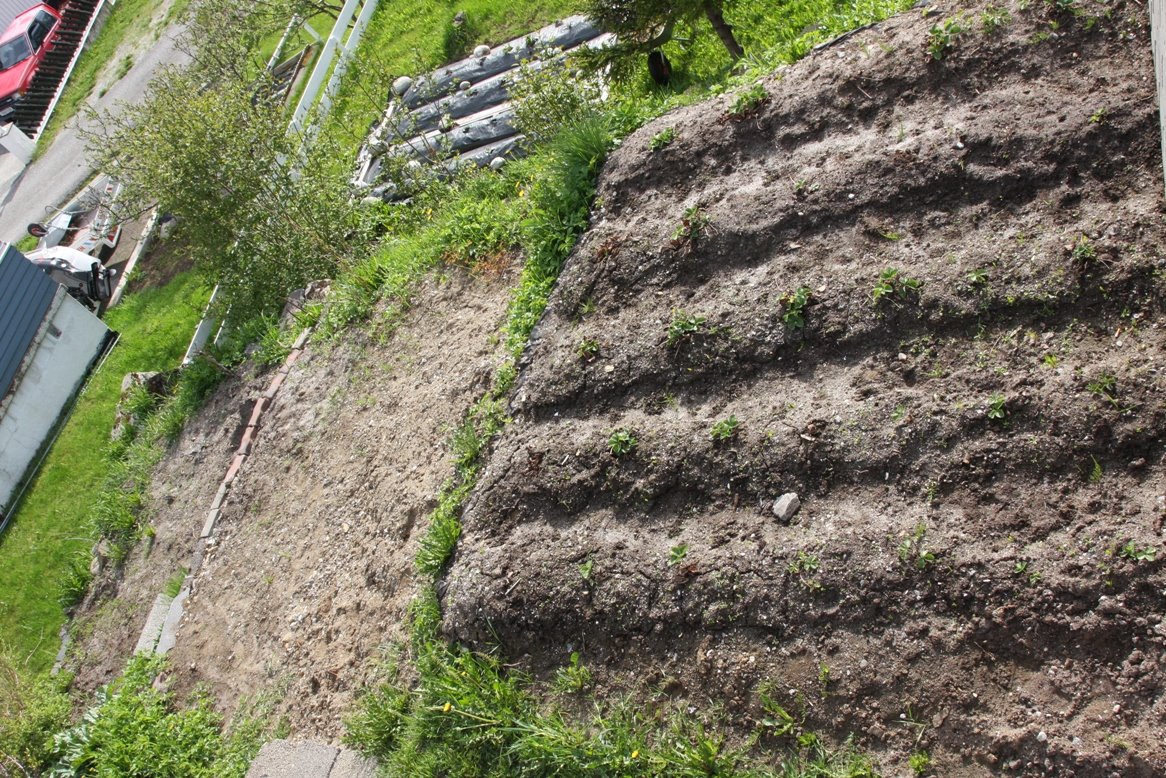 Nederst i hagen er det en liten jordbæråker og god plass til en liten Petter Sprett-hage. Mathilde har store planer for grønnsakshagen sin og vi skal prøve å få det klart sånn at ho kan plante når ho kommer hjem igjen. Der skal det vokse gullerøtter, neper, reddiker, sukkererter og av en eller annen grunn purreløk. Ho har plukket de ut selv, med unntak av mainepa. Den var det jeg som ønsket meg. Ellers så har ho fra før av en rabarbraflekk som ho allerede har spist godt ut av. Wenche skal komme og tynne litt ut i den og lage syltetøy av stenglene. Så får vi se om vi kan lure Mathilde til å smake også…