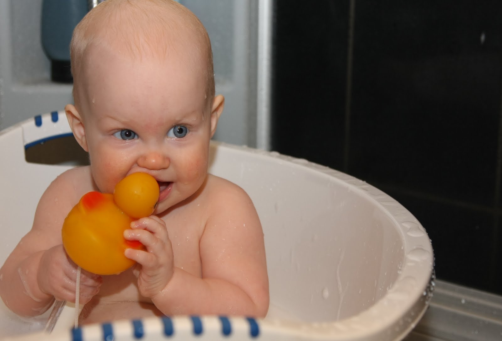 Saga har vokst masse og lærer nye ting hver dag. Ho har fått eget badekar, og å bade har blitt en favorittaktivitet. Når ho er lei så reiser ho seg opp i karet og da er det greit. Helt forskjellig fra Mathilde som var illsint hvis vi var frekke nok til å ta ho ut av vannet, selv om det var blitt kaldt.