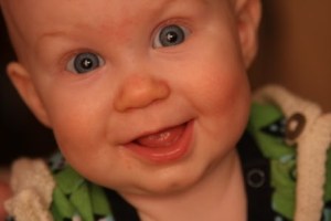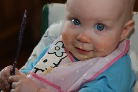 Saga har etter hvert fått tenner, først to nede i munnen og nå to oppe. H gnager på alt ho kommer over og har faktisk blitt ganske så flink til å spise mat også. I dag for eksempel spiste ho en halv grillpølse på egen hånd. Og et halvt pølsebrød. Ellers så spiser ho maten sin også, bare ho får majones på. Men bare da, altså.