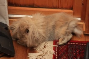 I februar fikk vi et nytt familiemedlem, Kompis. Han er en blanding av angorakanin og dvergvedder og halve kaninen har ull i spinnbar kvalitet. Resten av kaninen er bare til kos, selv om han ikke egentlig er spesielt glad i å kose.