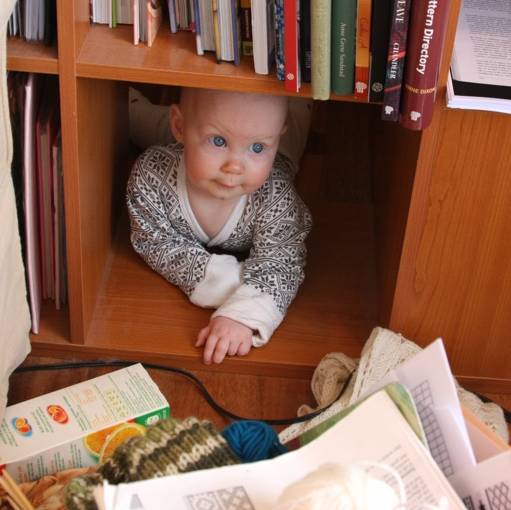 Saga har også blitt litt av en jeger og oppdager. Ho jakter hund og kanin dagen lang og knurrer som en shæfer når ho er på tokt. Lurer på hvor ho har det fra. Og så snoker ho i alle suffer og skap, og den hellige gral ser ut til å være i strikkekurven min for den prøver ho å nå alle mulige veier.