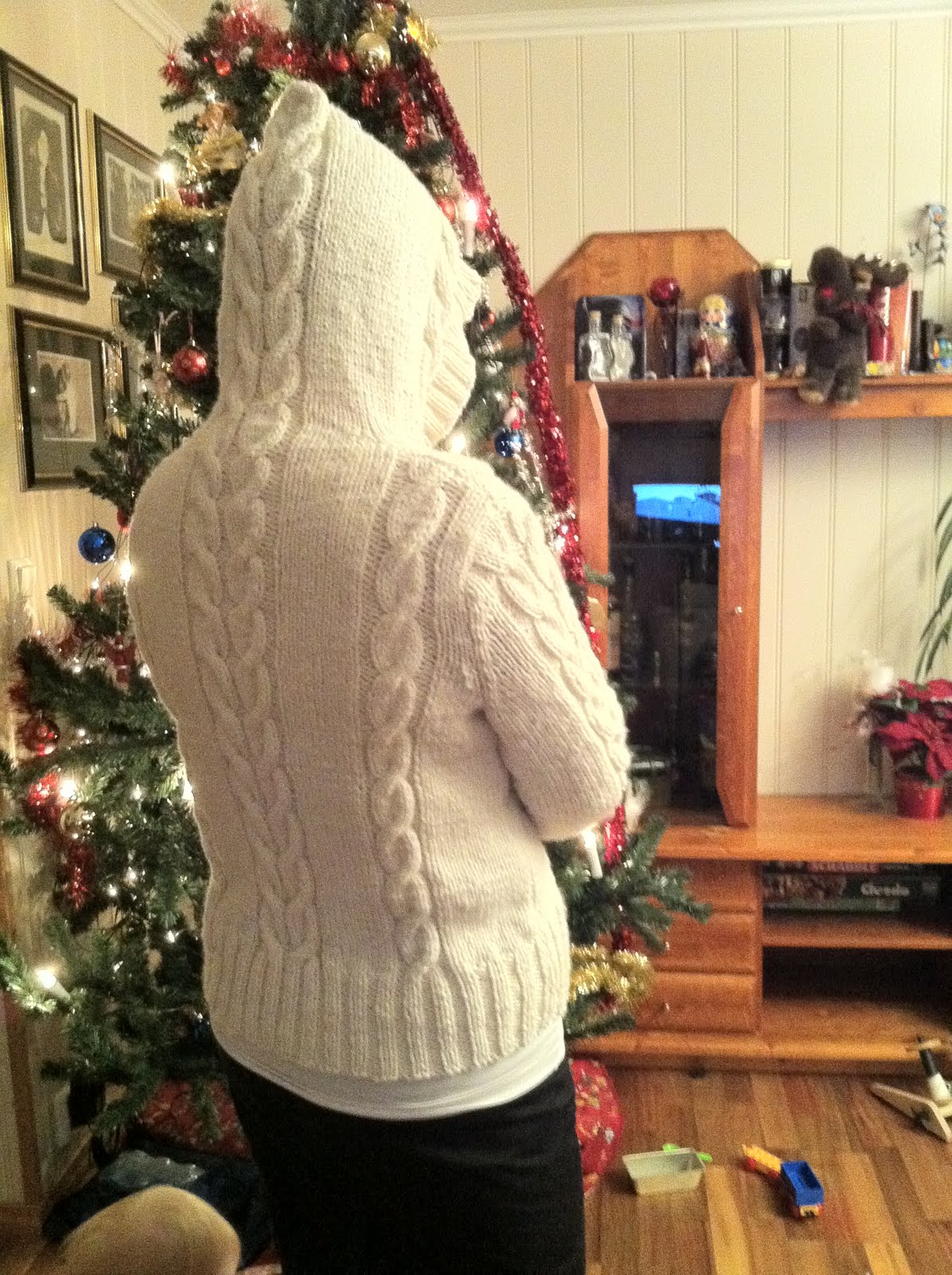 Jeg har spunnet garn til to jakker. En på våren og en til jul. Begge var til meg selv. (og jeg er i gang allerede med den tredje) Jeg har lært så utrolig mye av disse to store prosjektene. Den første jakka var «oatmeal cardigan» fra et spinn-off, og denne jakka ble ikke helt perfekt. Jeg liker jakka kjempegodt altså og har brukt den masse, men den ble spunnet altfor fast og er for tung. Etter at jeg lagde denne havnet jeg i en lei klemme der jeg spant alt garnet altfor hardt og kom ikke ut av det før jeg ble lei og tok håndteinene fatt. Etter å ha prøvd meg på forskjellige fiber på håndteinen i et par uker, kamel, merino, yak, bambus, silke, forskjellige sorter ull og alpakka, så gikk jeg tilbake til rokken igjen og da hadde det løsnet. Jeg visste hva jeg hadde gjort galt og siden har jeg stort sett kunnet lage akkurat de garnene jeg ville ha.