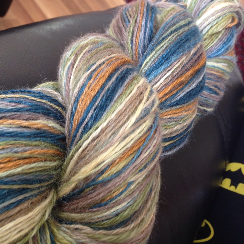 #- 6 september holdt Spinnvilt i Lillehammer Spinnefest15. Helga ble ikke helt som planlagt da kurslederen Abby F. ikke alikevel møtte opp. Tove fra Spinnvilt svingte seg rundt og hadde sokkegarnworkshop torsdag så det ble omtrent som oppsatt og Silja, Grete og meg ble spurt om å holde håndteinkurset på fredag. Og jammen klarte vi å knø sammen et anstendig kurs selv på under ett døgns planlegging. Det virker som om deltakerne var fornøyde og vi hadde det morro. Eirik mente vi kunne kalle oss «The Plying Circus» og det navnet ble etter hvert sittende. Nå bor jo vi tre på forskjellige kanter av landet så jeg er ganske sikker på at det ikke blir noen regelmessige opptredner for the Plying Circus, men artig var det. Resten av spinnehelga foregikk i fred og ro og jeg fikk spunnet masse! Tvinninga tok jeg da jeg kom hjem og kom meg til hektene igjen.