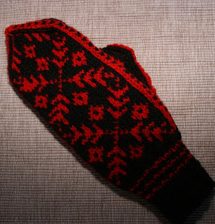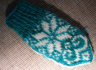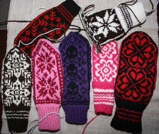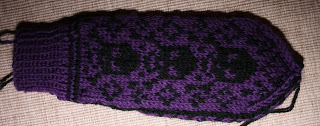 Og som om ikke det er nok har ho også bestilt votter. Det har bare blitt en venstrevott foreløpig, for jeg gikk tom for garn etter å ha laget hår på dukka, men i morra sksal jeg jobbe i butikken og da ordner det seg nok med sort garn…