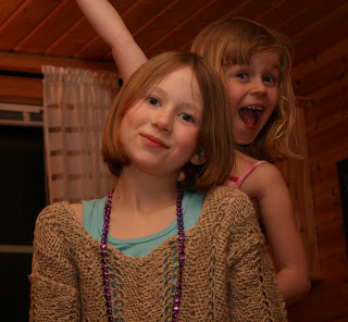 Søndag hadde Mathilde invitert oss til Nora, og Nora fulgte etter oss hjem for jentene skulle ha overnattingsfest på hytta. Og fest ble det. Både tidlig og sent. Jentene var oppe i sju-åttetia og etter litt mat var det rett ut i snøen. De rakk å være ute en fem-seks ganger og var inne bare for å tørke sko eller skifte strømpebukser og votter. Her gikk det unna så snøen kom til over alt. Pussig nok har vi glemt å ta bilder av snøaktiviteten. Misty som bare lå og sov i sofaen derimot, har vi masser av bilder av.