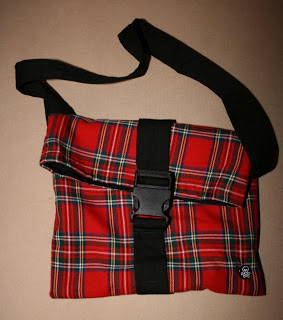 Apropos rockejente… M kom glisende ned med et tøystykke ho hadde funnet oppe. Det skulle bli veske og etter at ho hadde ryddet rommet sitt og hadde vært superflink å hjelpe til ble det jammen det.