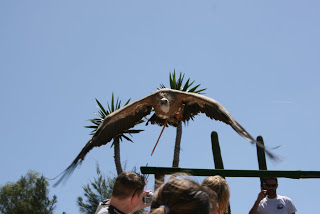 Min favoritt var rovfuglshowet der de hadde forskjellige av de mest ekstreme rovfuglene i verden, blandt annet en enormt svær fugl som vi først trodde var en ørn, så en gribb, nå er vi litt usikre men jeg mener bestemt at det var verdens største rovfugl. Eller noe sånt. Svær var den i hvertfall og den fløy rett over hodene på oss. De hadde masser av andre ekstreme rovfugler og alle fløy lydig over tupeene og flere av de var borti noen. Naturlig nok stresset de parkansatte veldig med at man ikke fikk reise seg og gå under showet.