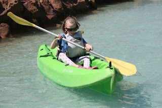 Mathilde på kanotur. Ho fikk teken på det etter hvert.