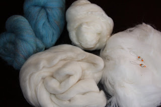 Jeg har ikke vært flink til å blogge spinning i det siste, men jeg HAR spunnet masse altså. Egentlig veldig mye. Noe har allerede blitt strikket opp, som den hvite lua i merino/cashmere. Den er fantastisk myk og deilig. Jeg hadde 50 gram og det holdt akkurat. Sjalet jeg holder på med er entråds merino og jeg håper jeg finner mere ull, ellers blir det bare et trekantskjerf.