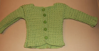 I helga har jeg strikket babyjakke. Siden vi enda ikke vet hva det blir så ble det i lysegrønt. Den ble kjempesøt og jeg håper den holder en stund, men den er strikket i 0-3 mndr så den varer vel bare ut høsten. Da er det kjekt at Renate har strikket en jakke som, selv om den er strikket med samme antall masker, ble ett nummer større. Har sikkert noe med mønsteret å gjøre. Neste prosjekt blir å strikke fanajakke. Tror jeg. Mathilde nummererte tre babyjakker jeg kunne strikke for meg så jeg skulle vite hva jeg skulle lage først. Så må jeg vel strikke noe til ho også innimellom. Jeg tror ho kan ha godt bruk for en vårlue. Kjenner jeg ho rett skal den sikkert være turkis da det er den nye favorittfargen.