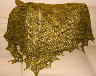 Da jeg var i Florida strikket jeg et sjal, til meg selv, en Laminaria i Hifa alv, selvfarget i oliven og grønntoner. Dette ble passe stort og jeg brukte det masse masse i Florida istedenfor genser de dagene det trengtes.