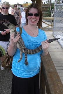 Vi fikk holde en aligatorunge, ca et par år gammel denne her og jeg er glad den hadde tape på nebbet for ellers hadde den nok prøvd å smake på solkremen min…