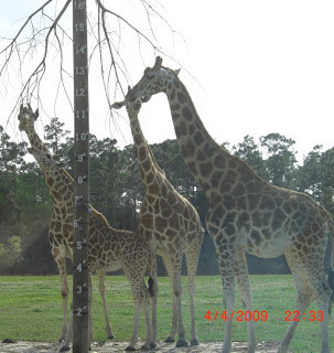Det samme gjorde giraffene, men her har nok de parkansatte jukset litt, for oppi målestanga hadde de hengt noe godt så de henger nok ofte rundt her.